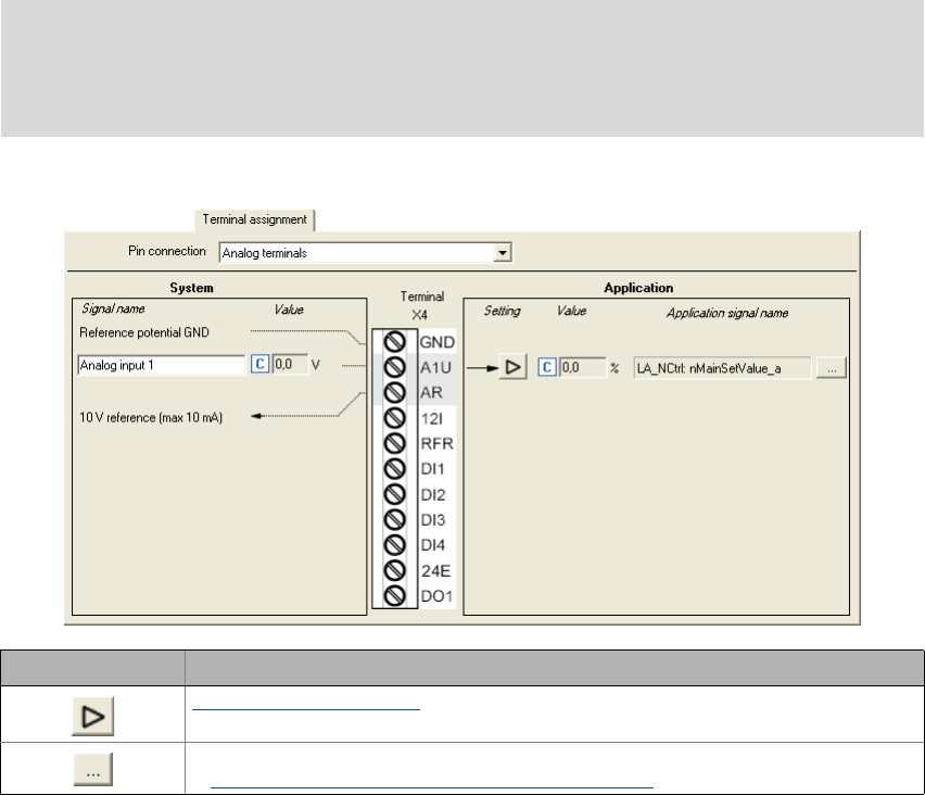 Open the parameterising dialog for assigning application inputs to the analog input.