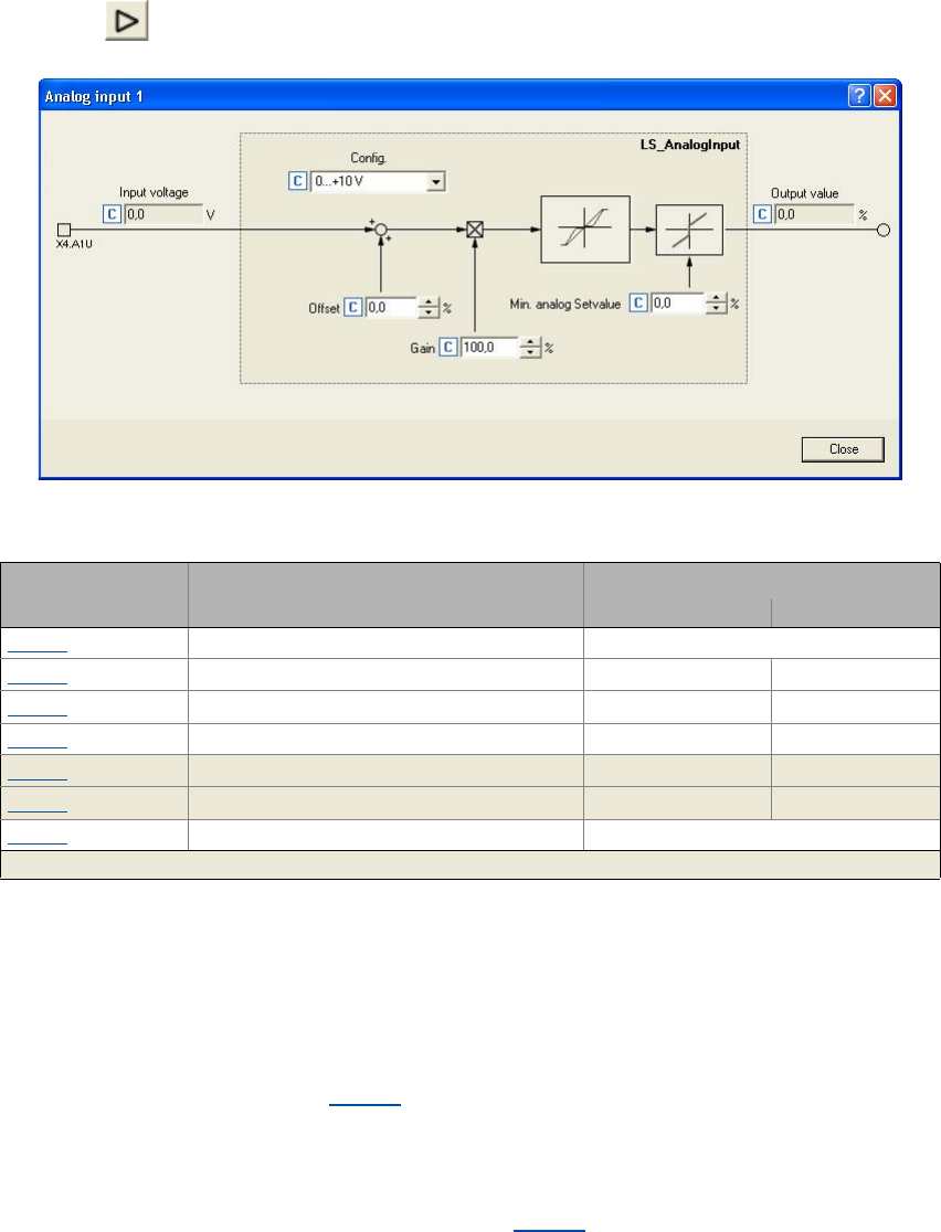 In the Lenze setting, a voltage signal in the range 0 ... +10 V is evaluated via the analog input termi-