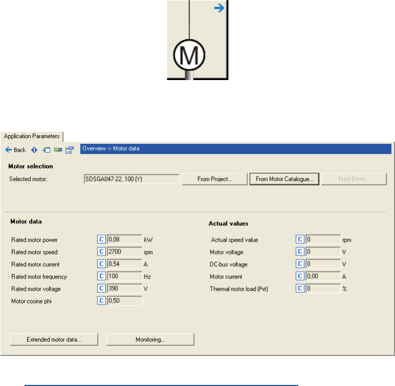 •Via the from Motor Catalogue button, the motor catalogue can be opened to select another mo-