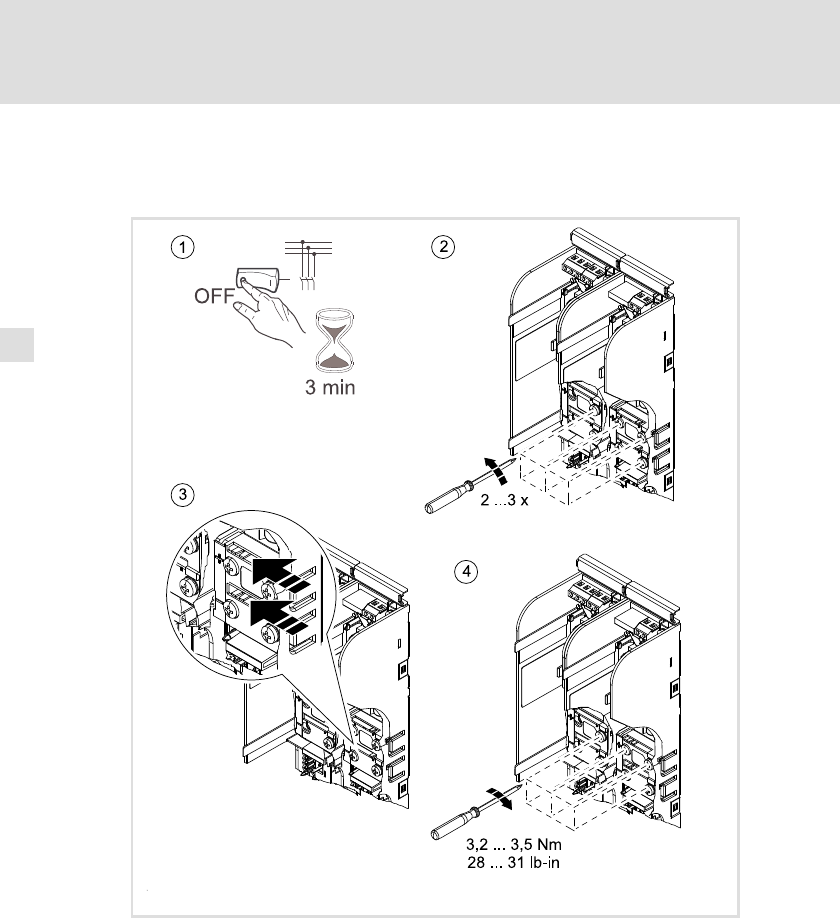 Esempio: collegamento delle barre DC bus ai moduli alimentatore DC