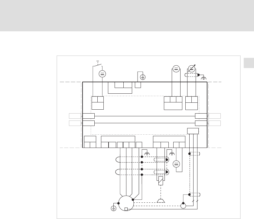 Speed setpoint selection via analog input 1 (−10 ... 0 ... +10 V)