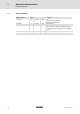 6 Electrical installation Connecting the supply and peripheral devices USB interface (X104, X105, X106) 6.3.7 USB interface (X104, X105, X106) Description Connection type Cable type USB−A socket USB cable with USB−A plug Description Connection type Cable type Interface for MC card Socket connector − Connection type Cable type USB−A socket USB cable with USB−A plug USB 2.0 host connection Max. load: 5 V/500 mA IPC001 6.3.8 Communication interface (MC card) EL100−013 6.3.