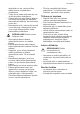 Leonard Problēma Iespējamie iemesli Risinājums Sensora lauki sakarst. Ēdiena gatavošanas trauki ir par lielu vai arī novietoti pār‐ āk tuvu vadības ierīcēm. Ja nepieciešams, novietojiet lielāka izmēra ēdiena gata‐ vošanas traukus uz aizmu‐ gurējām zonām, ja nepiecie‐ šams. Iedegas indikators. Automātiskā izslēgšanās ak‐ tivizēta. Izslēdziet plīti un atkal ie‐ slēdziet to. Iedegas indikators. Bērnu drošības ierīce vai Bloķēšana funkcija darbojas. Skatiet sadaļu "Izmantošana ikdienā".