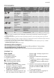 leonard 5 PROGRAMOS Programa1) 2) 3) 4) Nešvarumo laipsnis Skalbinių tipas Programa fazės Trukmė (min.) Energija (kWh) Vanduo (l) Labai nešvarūs Indai, stalo įrankiai, puodai ir keptuvės Pirminis plovimas Plovimas 70 °C Skalavimai Džiovinimas 85 - 95 1.8 - 2.0 22 - 25 Vidutiniškai sutepti Indai bei stalo įrankiai Pirminis plovimas Plovimas 65 °C Skalavimai Džiovinimas 100 - 110 1.4 - 1.6 19 - 21 Neįsisenėję nešvarumai Indai bei stalo įrankiai Plovimas 65 °C Skalavimas 30 0.