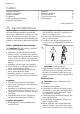 leonard 7 Skalavimo priemonės dalytuvo pildymas C 20 MAx A B + - 1 2 4 30 D 3 1. Sukite dangtelį (C) prieš laikrodžio rodyklę, norėdami atidaryti skalavimo priemonės dalytuvą. 2. Pripildykite skalavimo priemonės dalytuvą (A) ne daugiau kaip iki žymos „max“. 3. Nuvalykite išsiliejusią skalavimo priemonę sugeriančia šluoste, kad išvengtumėte per didelio putų susidarymo. 4. Kad uždarytumėte skalavimo priemonės dalytuvą, uždėkite dangtelį ir pasukite jį pagal laikrodžio rodyklę.