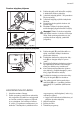 leonard 7 Druskos talpyklos pildymas 1. Sukite dangtelį prieš laikrodžio rodyklę ir atidarykite druskos talpyklą. 2. Į druskos talpyklą įpilkite 1 litrą vandens (tik pirmą kartą). 3. Į druskos talpyklą pripilkite indaplovės druskos. 4. Nuvalykite druską aplink druskos talpyklos angą. 5. Norėdami uždaryti druskos talpyklą, sukite dangtelį pagal laikrodžio rodyklę. Atsargiai Pildant iš druskos talpyklos gali ištekėti vanduo ir druska. Korozijos rizika.