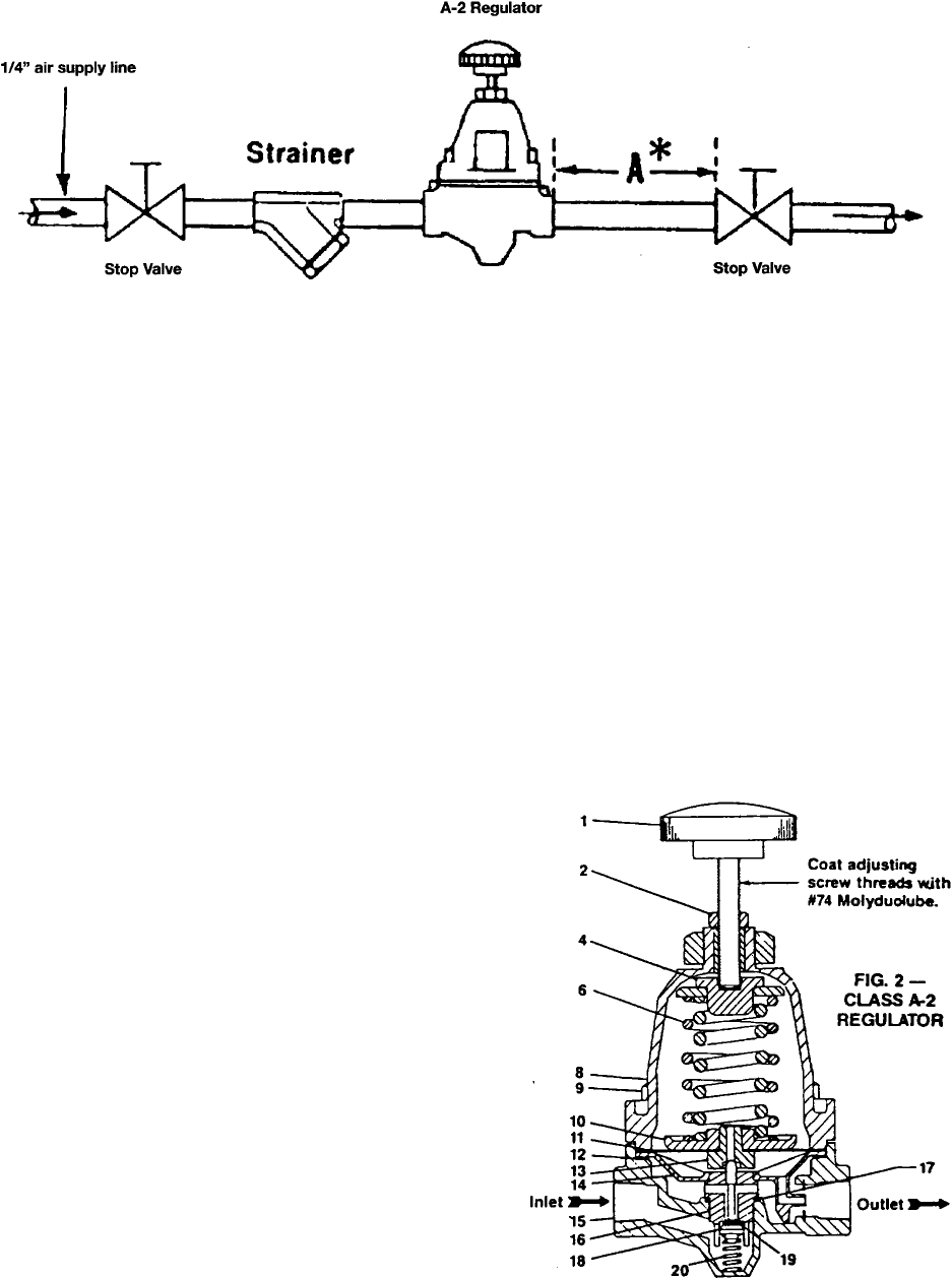 1. Shut-off air supply. Loosen locknut (2). Relieve all