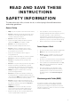 READ AND SAVE THESE INSTRUCTIONS SAFETY INFORMATION To reduce the risk of fire, electric shock, or other injury, follow all instructions and safety guidelines. General Safety • • • • • • • • • • • • • • • • • Only use your air purifier as described in this manual. Do not use without removing the plastic wrap from the filter. The air purifier will not filter air, and may overheat, causing a fire hazard. Do not use the air purifier outdoors. Keep the air purifier away from water, and wet or damp areas.