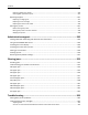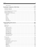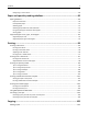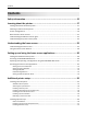 Contents 2 Contents Safety information.....................................................................................15 Learning about the printer.........................................................................17 Finding information about the printer....................................................................................................17 Selecting a location for the printer..........................................................................................................