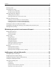 Contents 2 Contents Safety information.....................................................................................15 Learning about the printer.........................................................................17 Finding information about the printer....................................................................................................17 Selecting a location for the printer..........................................................................................................
