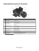 Use the To 1 Scanner glass Scan and copy photos and documents. 2 Power supply with port Connect the printer to a power source. 3 USB port Connect the printer to a computer using a USB cable. Warning—Potential Damage: Do not touch the USB port except when plugging in or removing a USB cable or installation cable. 4 Printhead access Install the printhead. Note: The carrier moves to the printhead access area when no printhead is installed in the printer.
