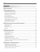 Contents 2 Contents Safety information.......................................................................................7 Learning about the printer...........................................................................9 Thank you for choosing this printer!.........................................................................................................9 Finding information about the printer....................................................................................................