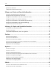 Inhalt 2 Inhalt Sicherheit.....................................................................................................7 Informationen zum Drucker.........................................................................9 Ermitteln von Druckerinformationen........................................................................................................9 Auswahl eines Druckerstandorts.............................................................................................................