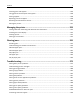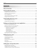 Contents 2 Contents Safety information.......................................................................................7 Learning about the printer...........................................................................9 Finding information about the printer......................................................................................................9 Selecting a location for the printer.......................................................................................................