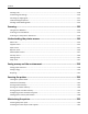 Contents 5 Ordering parts and supplies..................................................................................................................236 Using genuine Lexmark parts and supplies...........................................................................................238 Storing supplies.....................................................................................................................................238 Replacing parts and supplies......................................