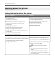 Learning about the printer 9 Learning about the printer Finding information about the printer What are you looking for? Find it here Initial setup instructions: Setup documentation—The setup documentation came with the printer and is also available on the Lexmark Web site at http://support.lexmark.com.