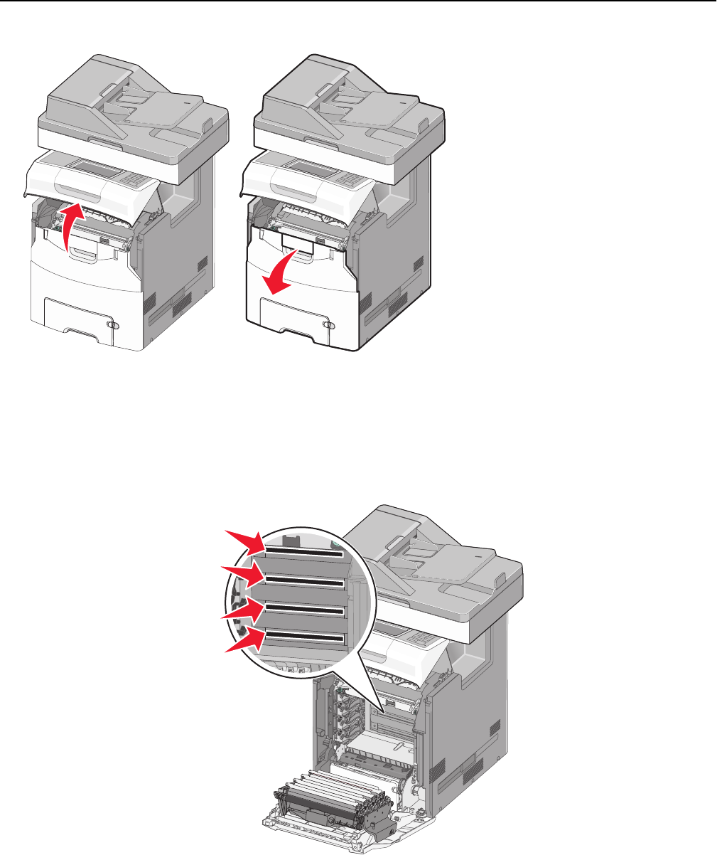 Warning—Potential Damage: To avoid overexposing the photoconductors, do not leave the front door open for