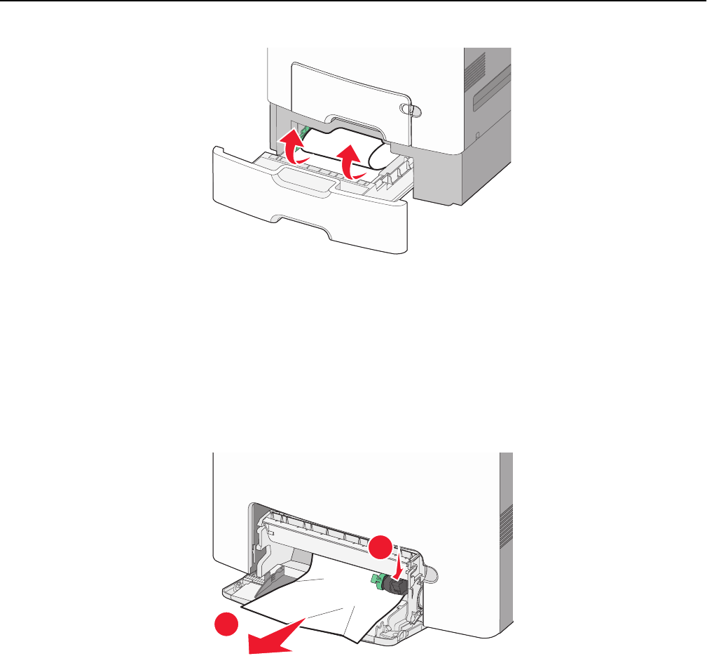 1 Press the paper release lever, and then remove any jammed pages from the multipurpose feeder.