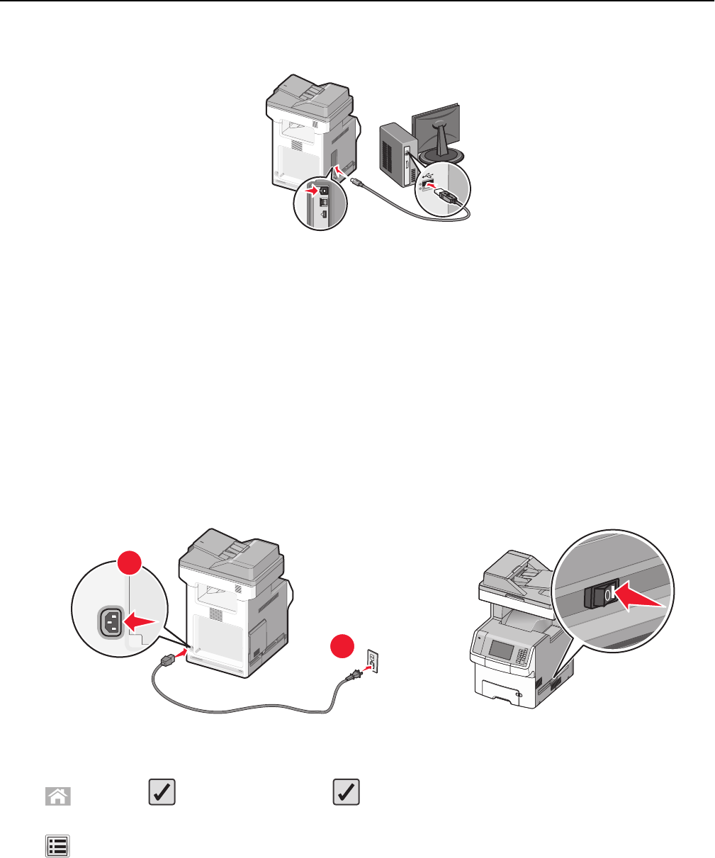 Connect the power cord to the printer, then to a properly grounded electrical outlet, and then turn on the printer.
