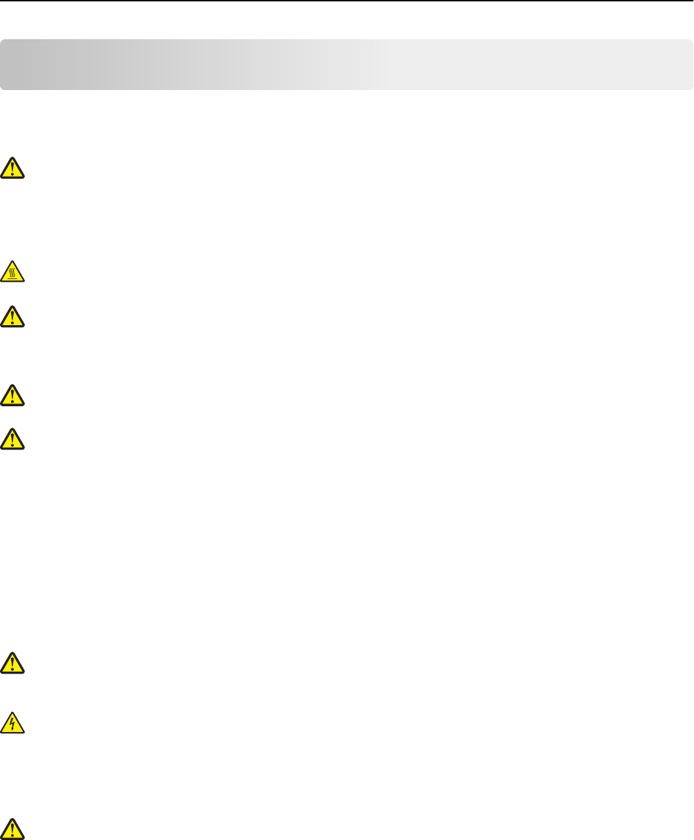 CAUTION—POTENTIAL INJURY: Before moving the printer, follow these guidelines to avoid personal injury or