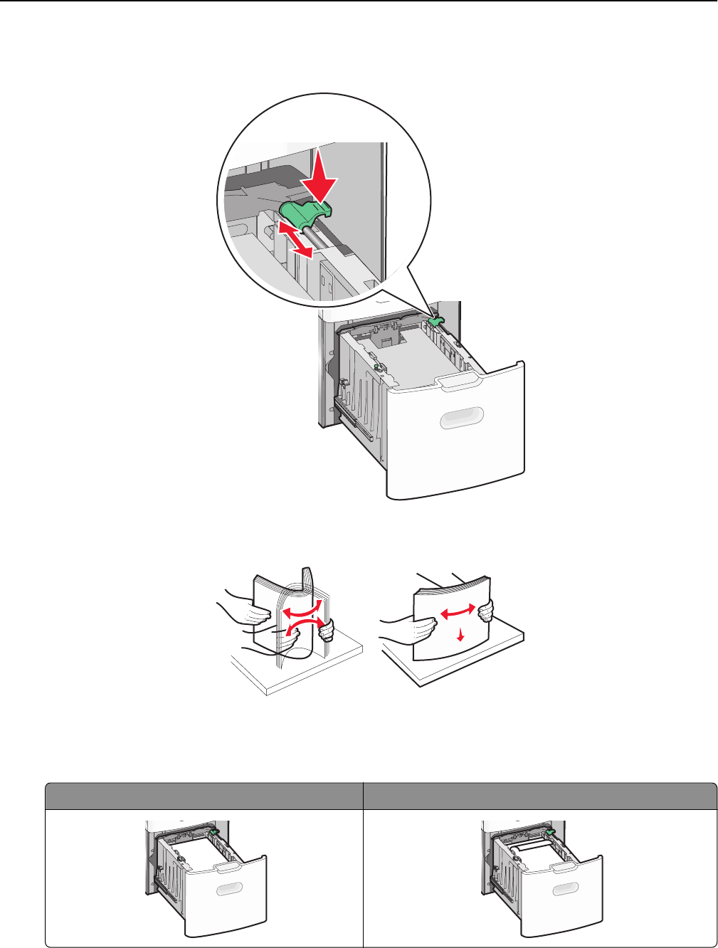 4 Push the length guide release latch to raise the length guide. Slide the guide to the correct position for the paper
