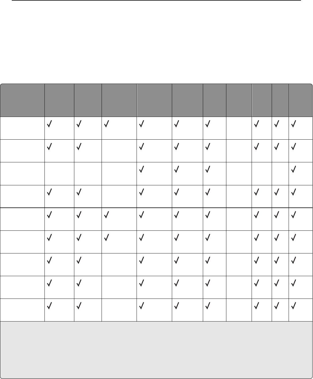 The following tables provide information on standard and optional paper input sources and the types of paper they