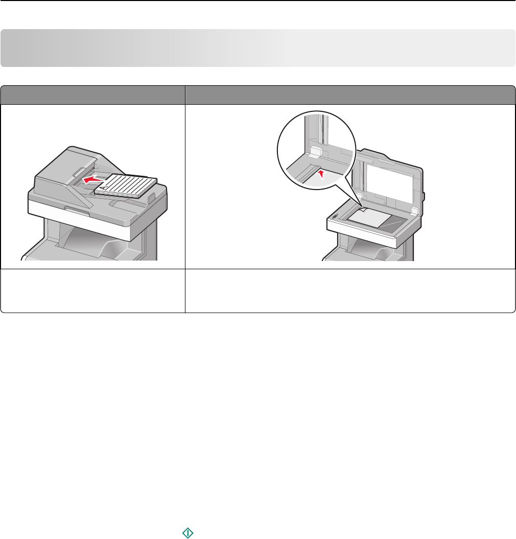 1 Load an original document faceup, short edge first into the ADF or facedown on the scanner glass.