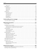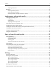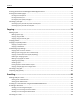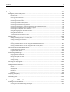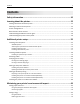 Contents 2 Contents Safety information.....................................................................................10 Learning about the printer.........................................................................12 Finding information about the printer....................................................................................................12 Selecting a location for the printer..........................................................................................................