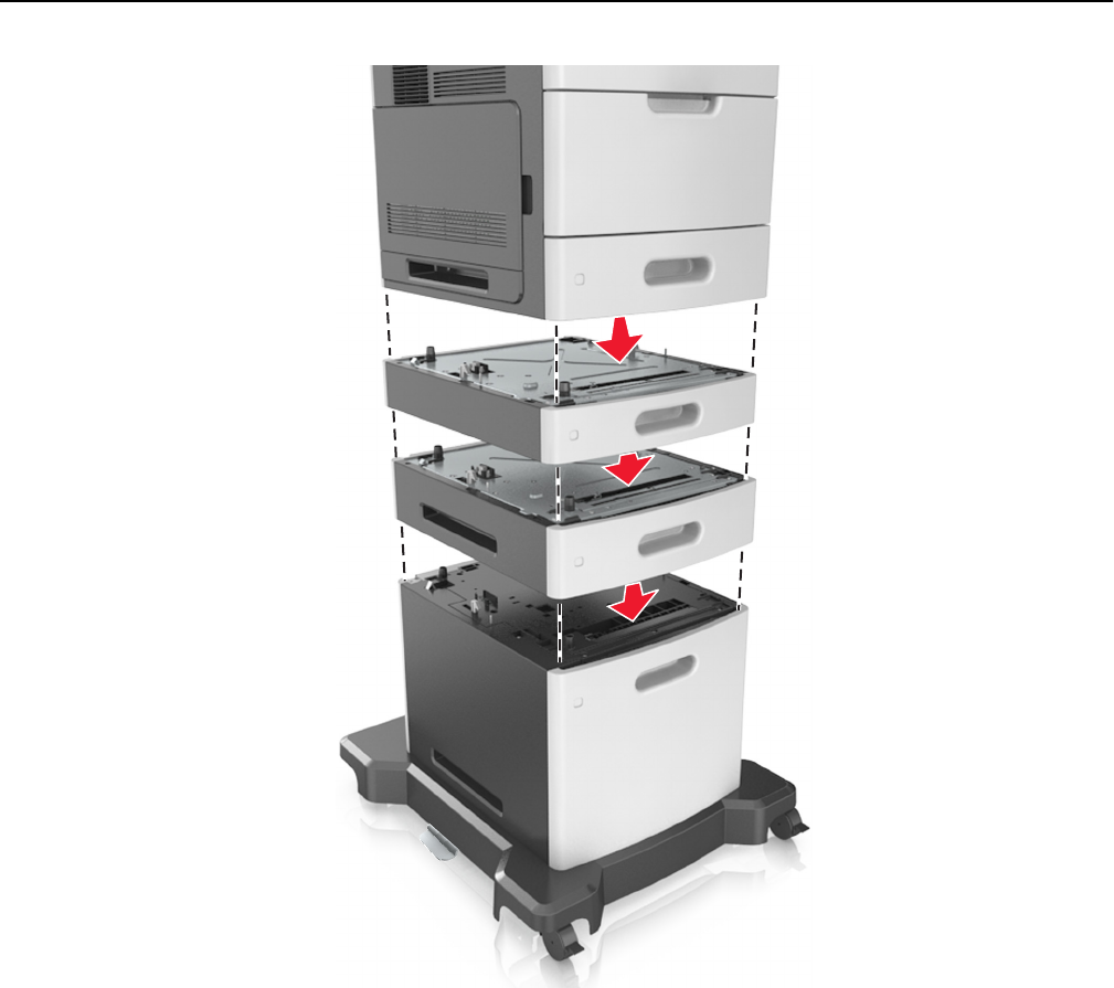 9 Connect the power cord to the printer, then to a properly grounded electrical outlet, and then turn on the printer.