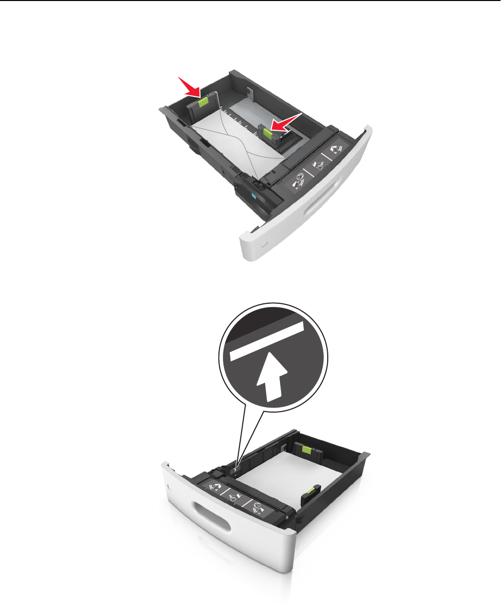 • Make sure the paper is below the solid line, which is the maximum paper fill indicator.