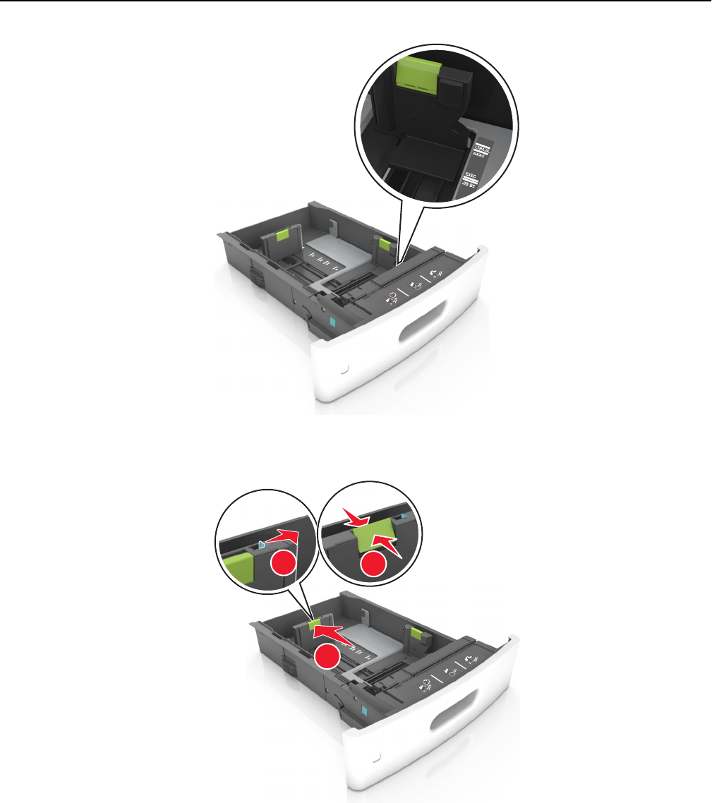 Use the paper size indicators at the bottom of the tray to help position the guides.