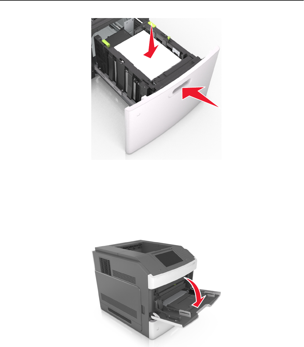 Note: Do not load or close the multipurpose feeder while a job is printing.