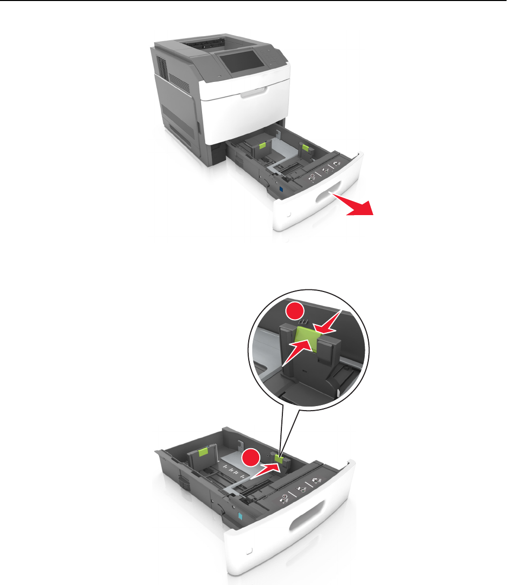 Note: Use the paper size indicators at the bottom of the tray to help position the guides.