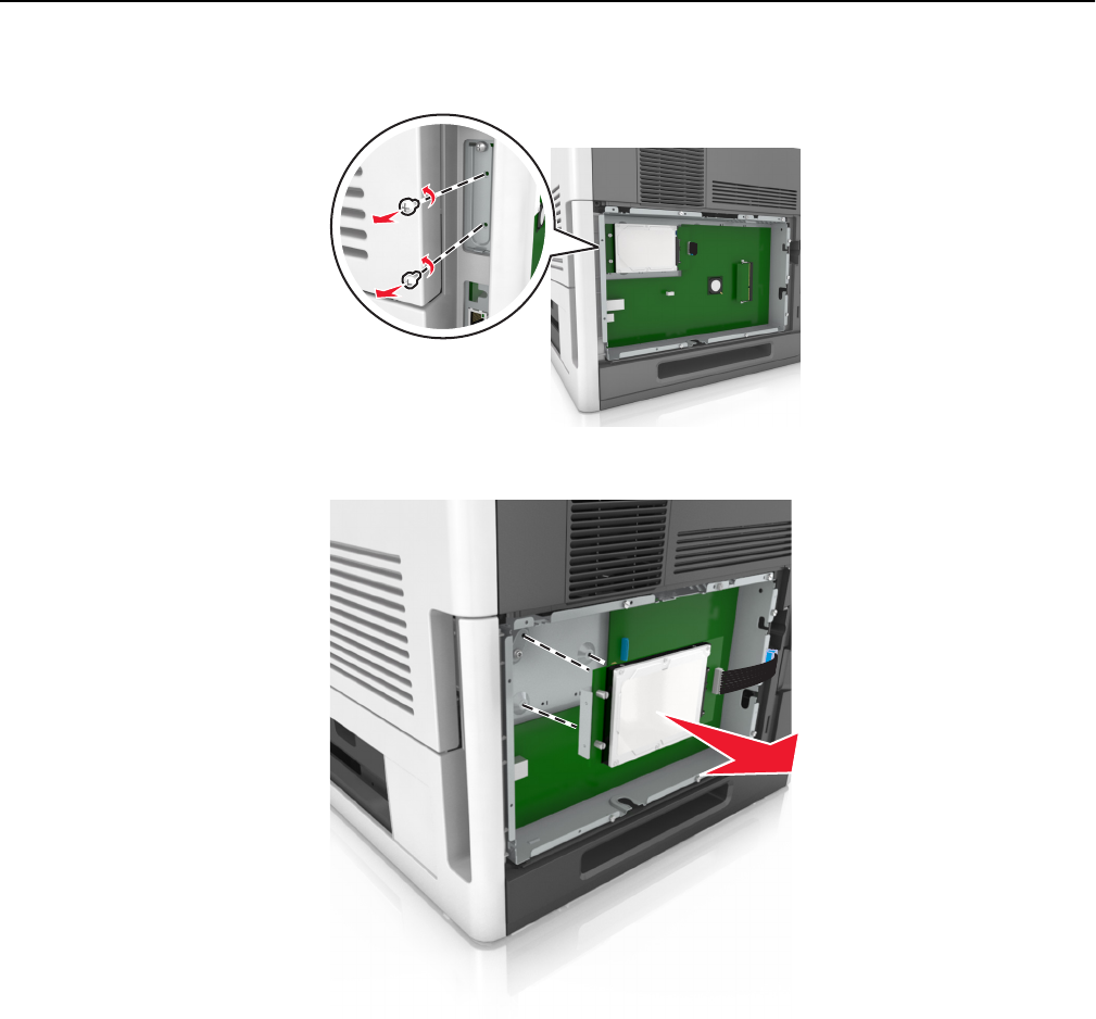 3 Remove the screws holding the printer hard disk in place.