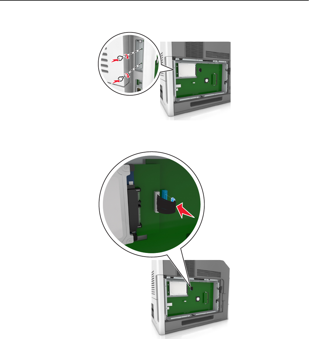 b Use the two provided screws to attach the printer hard disk mounting bracket.