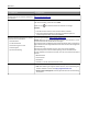 Fehlerbehebung Aktion 315 Ja Das Problem wurde Schritt 6 a Entfernen Sie zunächst die Druckersoftware und installieren Sie sie dann behoben. erneut. Weitere Informationen finden Sie unter "Installieren des Druckers" auf Seite 34. Nein Wenden Sie sich an den Kundendienst. Hinweis: Die Druckersoftware steht unter http://support.lexmark.com zur Verfügung. b Senden Sie den Druckauftrag erneut.