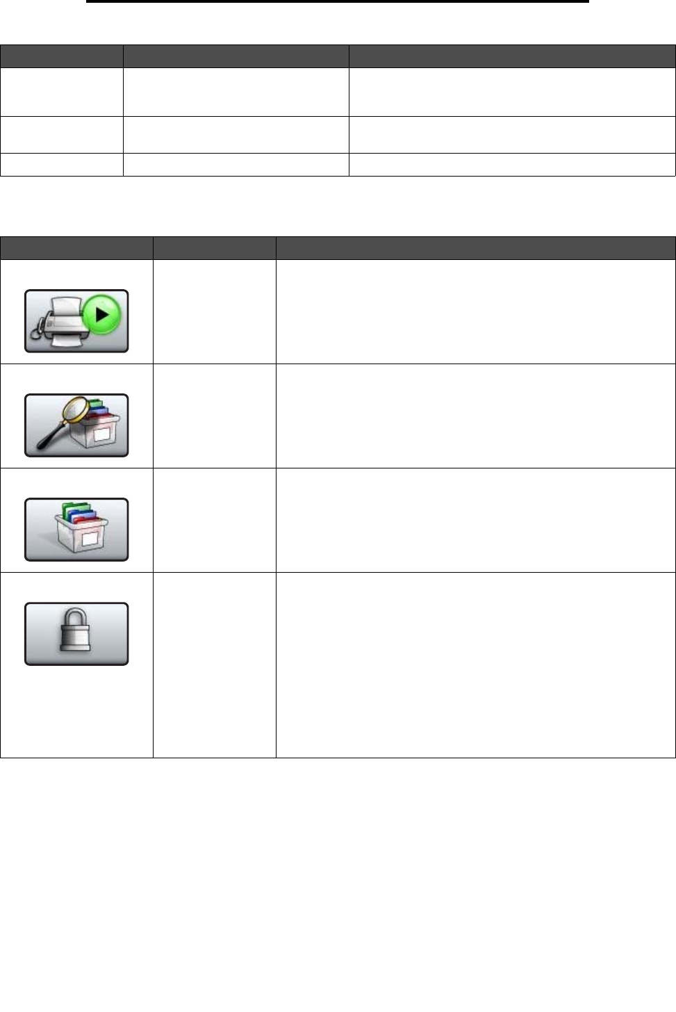 Other LCD touch-screen buttons may appear on the home screen. They are: