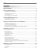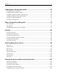 Contents 2 Contents Safety information.......................................................................................6 Learning about the printer...........................................................................8 Finding information about the printer......................................................................................................8 Selecting a location for the printer.......................................................................................................
