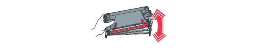 2 Otáčejte kazetou podle obrázku a pevně kazetu několikrát protřeste nahoru a dolu, aby jste