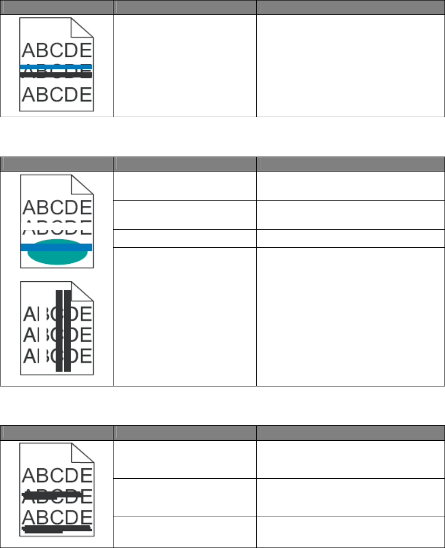 - Slabě zbarvená čára, bílá čára nebo nesprávně zbarvená čára