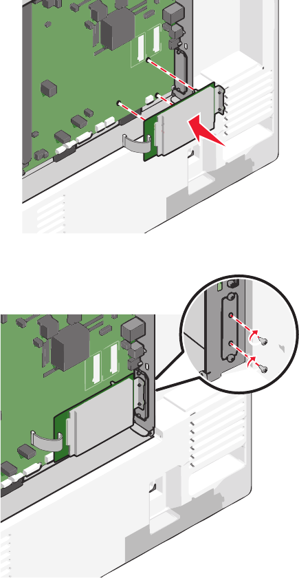 b Use the two provided screws to attach the printer hard disk mounting bracket.