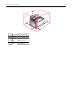 Additional printer setup 41 1 2 3 1 USB printer port 2 USB port 3 Ethernet port Warning—Potential Damage: Do not touch the USB cable, any network adapter, or the printer in the area shown while actively printing. A loss of data or a malfunction can occur.