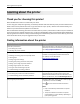Learning about the printer 8 Learning about the printer Thank you for choosing this printer! We've worked hard to make sure it will meet your needs. To start using your new printer right away, use the setup materials that came with the printer, and then skim the User’s Guide to learn how to perform basic tasks. To get the most out of your printer, read the User’s Guide carefully, and make sure you check the latest updates on our Web site.