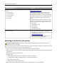 Additional printer setup 53 6 Type the new IP address in the “Printer Name or IP Address” field. 7 Click OK > Close. For Macintosh users 1 Open a Web browser, and then type the printer IP address in the address field. Notes: • View the printer IP address on the printer control panel. The IP address appears as four sets of numbers separated by periods, such as 123.123.123.123. • If you are using a proxy server, then temporarily disable it to load the Web page correctly. 2 Add the printer.
