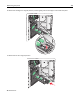 When a jam occurs, a message indicating the jam location appears on the printer display. Open doors and covers, and