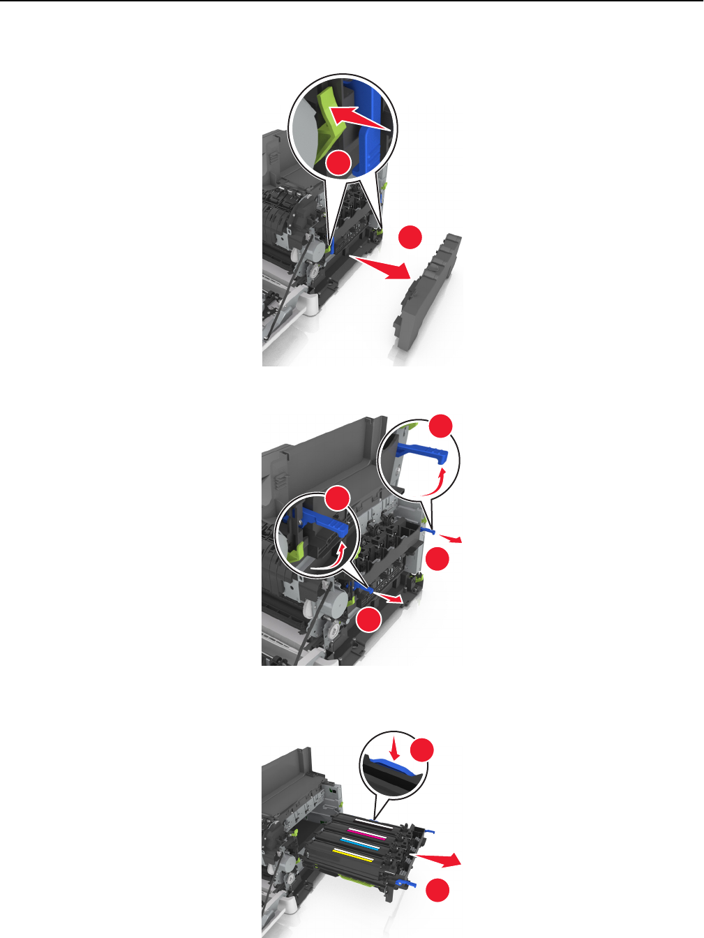 7 Druk de blauwe hendels omlaag, pak de groene handgrepen aan de zijkanten vast en trek de beeldverwerkingskit