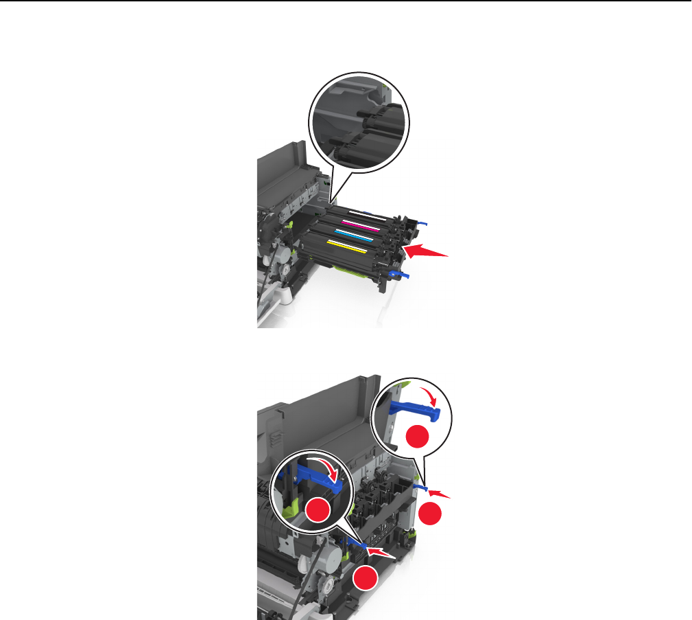 15 Duw de blauwe hendels omlaag totdat de beeldverwerkingskit op de goede plaats zit.