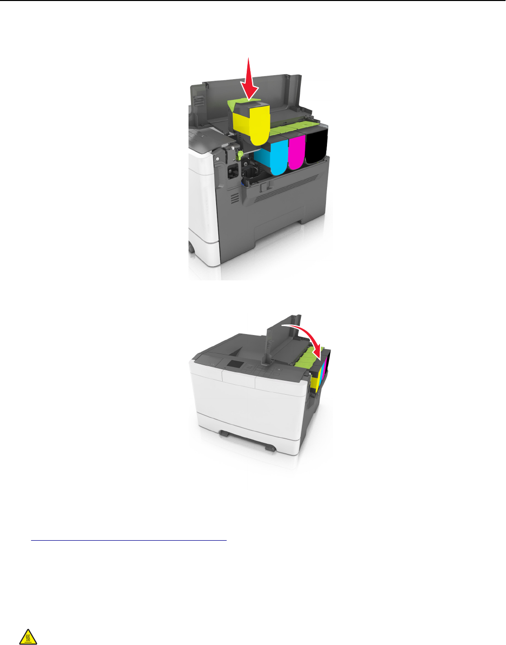 4 Lijn de nieuwe tonercartridge uit en druk deze vervolgens omlaag totdat de cartridge op zijn plaats zit.