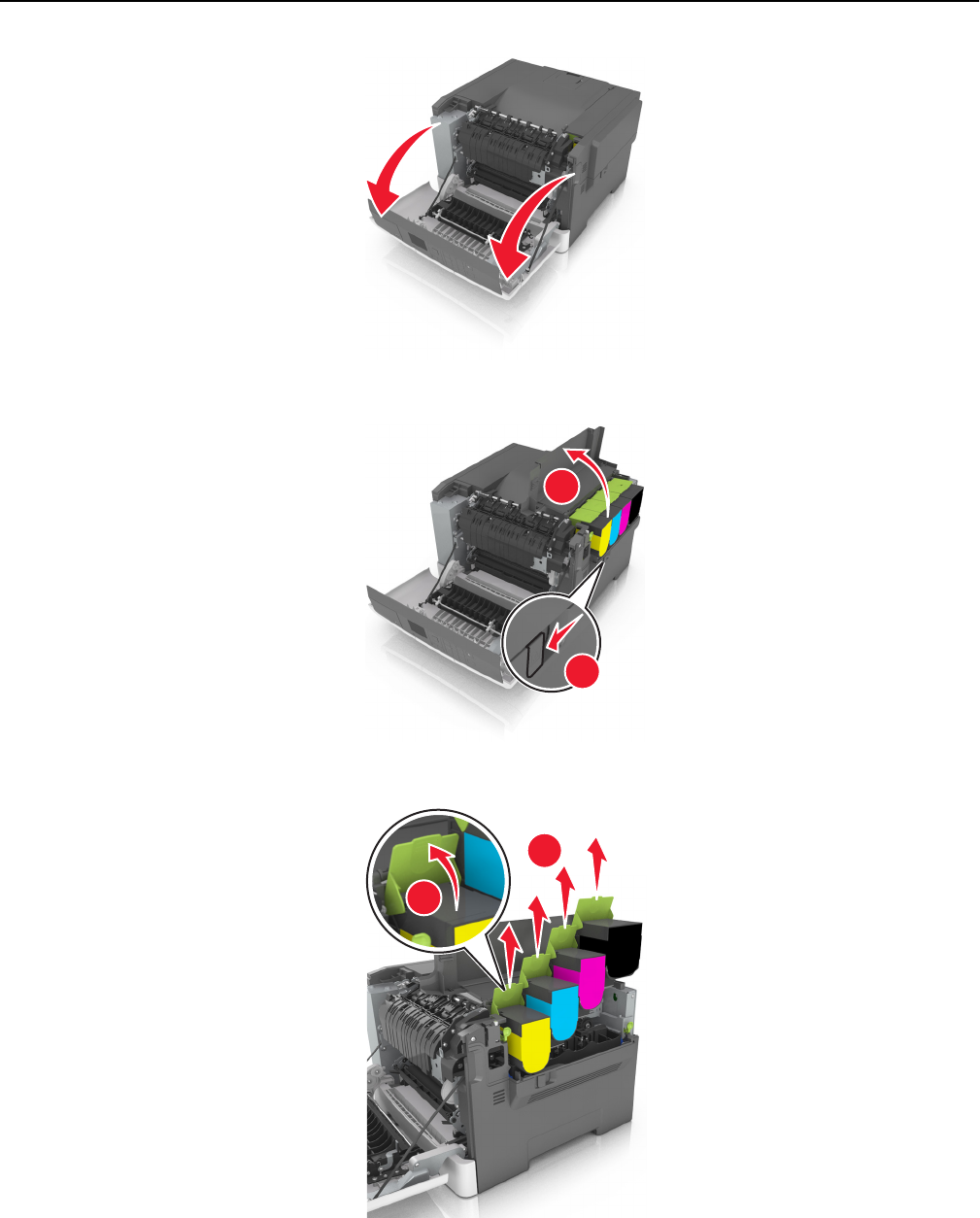3 Verwijder de tonercartridges.