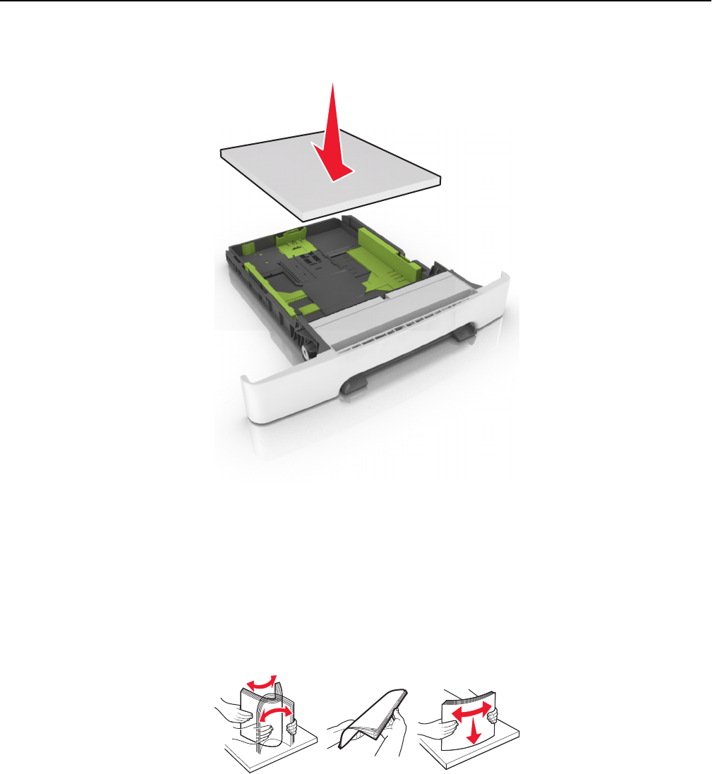 • Buig het papier, waaier het uit en maak er een rechte stapel van voordat u het in de printer plaatst.
